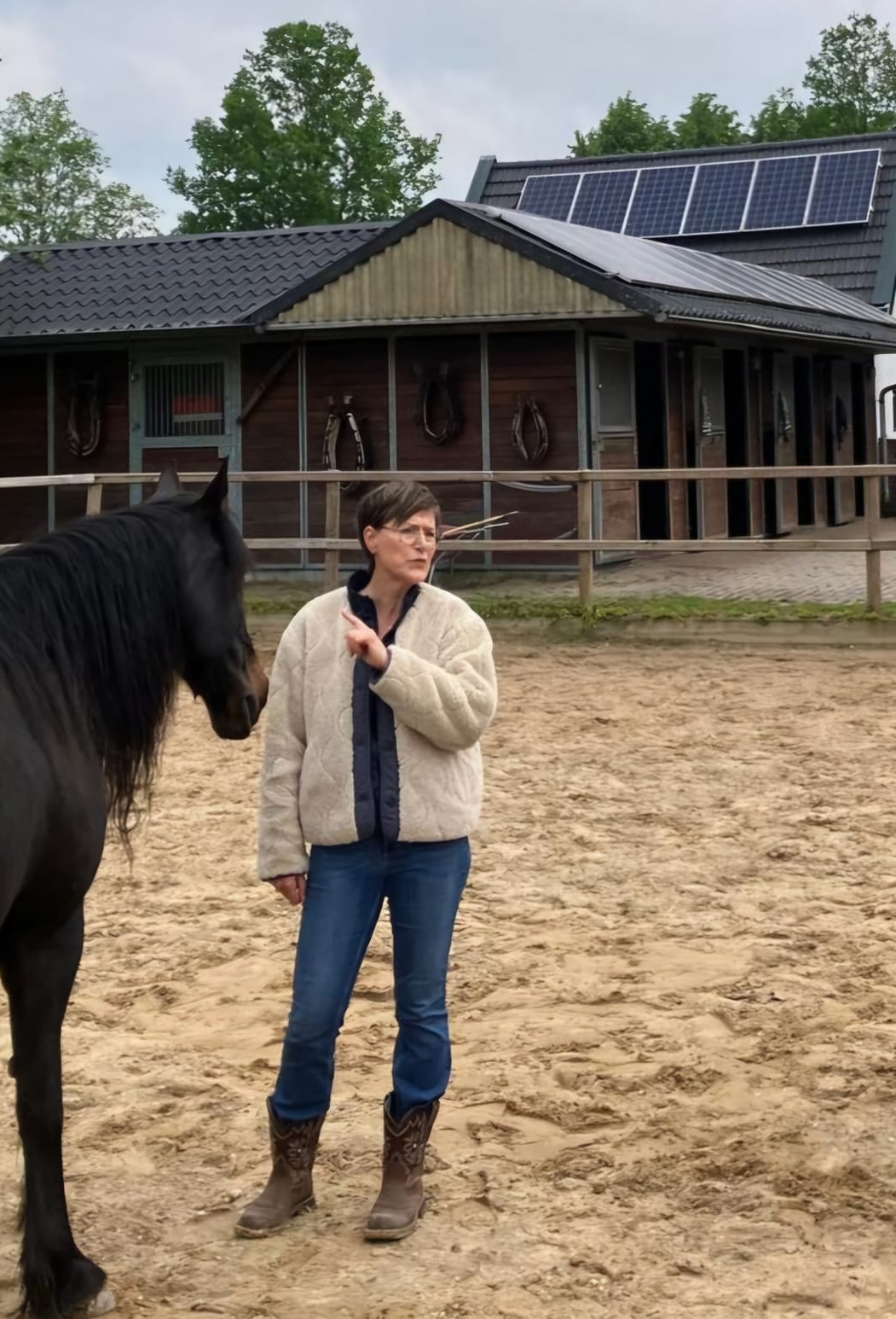 In het begin van mijn coach- en opleiderscarrière hield ik met Peter, -nu- mijn man, een handelsstal met 5 paarden draaiende voor een vriend. Iedere ochtend maakten we voor ons werk de stallen schoon en voerden de paarden. Iedere avond reden we op de paarden of lieten ze spelen in de bak.